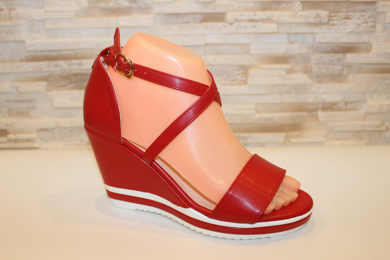 Босоножки жіночі червоні на танкетці Б1401